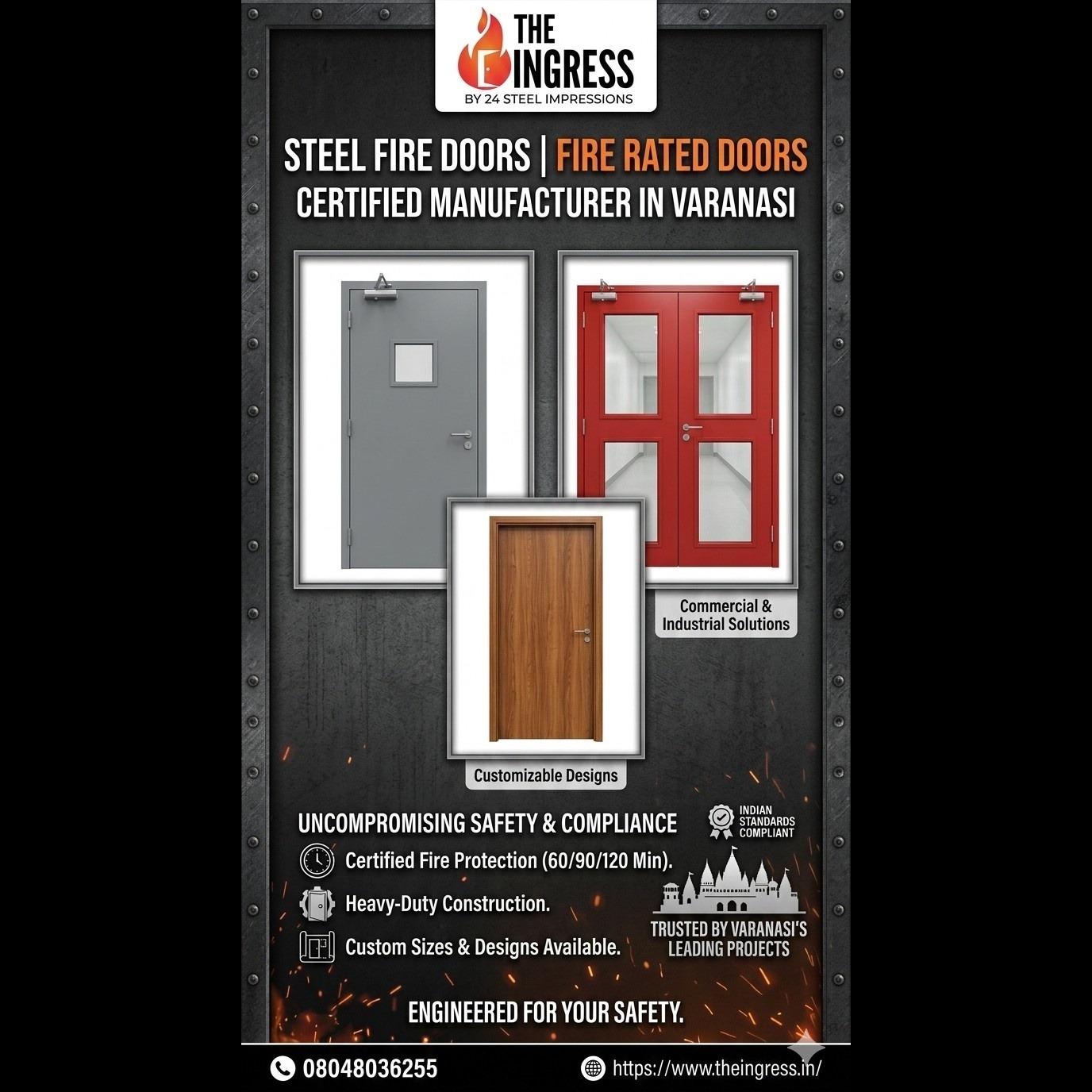 THE INGRESS is a trusted steel fire doors manufacturer in Varanasi, offering high-quality fire-rated door solutions designed to enhance safety in residential, commercial, and industrial buildings. With a strong focus on durability, fire resistance, and compliance with safety standards, THE INGRESS manufactures steel fire doors that help prevent the spread of fire and smoke while protecting lives and property.
