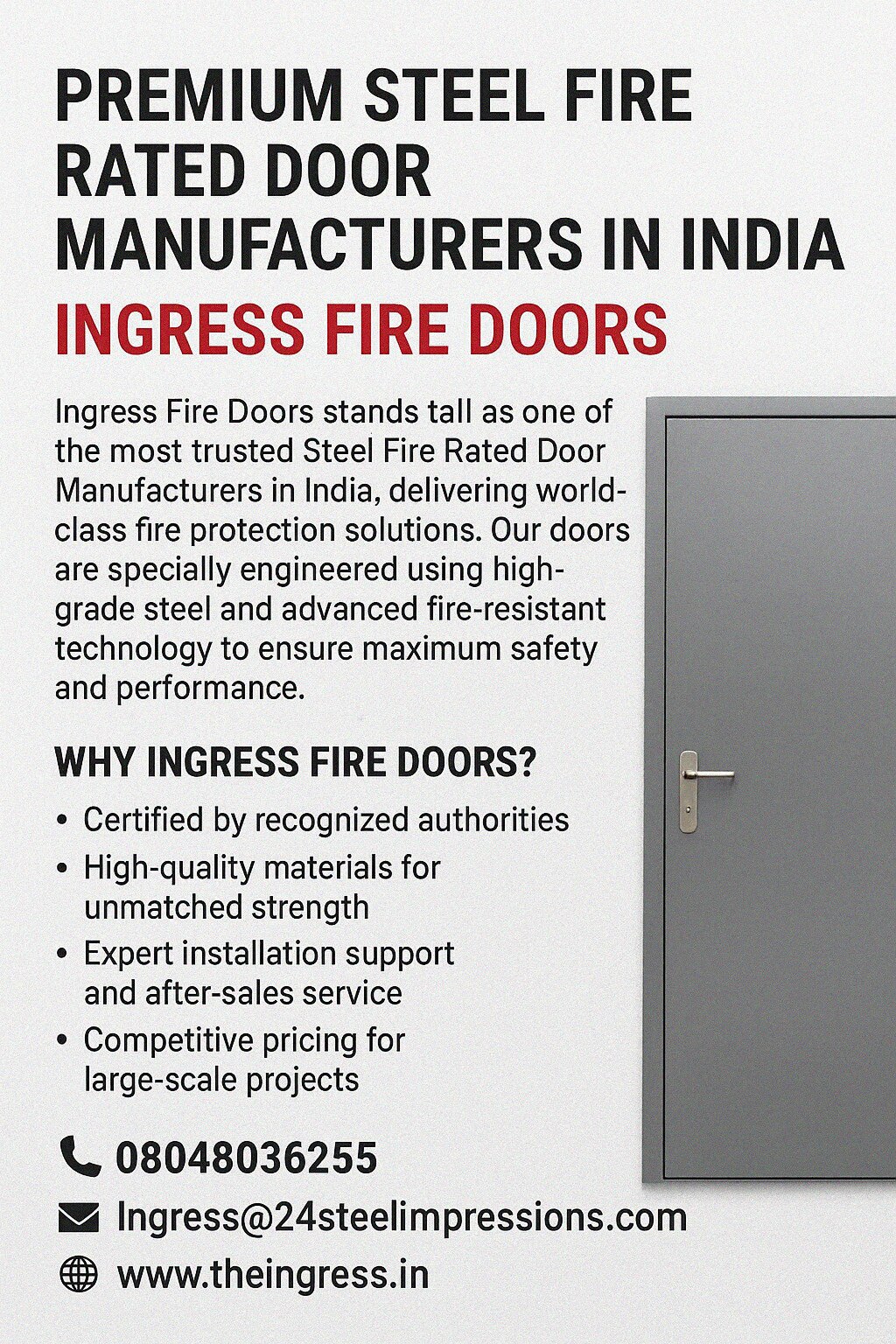 When it comes to safety, durability, and compliance, choosing the right doors is crucial. Ingress Fire Doors is among the most reliable Steel Fire Rated Door Manufacturers in India, delivering premium-quality solutions designed to safeguard lives and property.